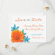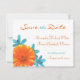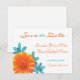 Salva datas personalizados com um tema floral laranja e azul turquesa.