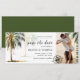 Nosso cartão de save the date de casamento com tema de praia é a maneira perfeita de tornar o seu grande dia ainda mais especial. Com palmeiras tropicais em aquarela romântica, uma foto do casal, uma bússola e um modelo elegante de save the date fácil de personalizar.