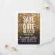 Moderno Salve a data com o plano de fundo de aparência Glitter. Facilmente personalizável usando seu próprio texto, cores, etc. *O Designer sugere tipos de papel brilhantes para este convite. *Use o botão personalizar e, em seguida, edite, copie e cole para colocar a imagem frontal na parte traseira do convite, se desejar. Entre em contato conosco se tiver alguma dúvida.