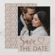 Moderno e elegante, é este cartão postal de casamento 'salvar a data'. Na frente está a foto do casal favorito com caligrafia elegante 'Salvar a Data' com detalhes em coração. No verso há espaço para você adicionar seus detalhes. Muito fácil de personalizar com suas próprias informações.