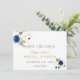 Design único e elegante com flores delicadas delineadas a ouro e flores azuis em aquarela. Utilize a ferramenta Personalizar para adicionar as suas informações. Visite, por favor, a minha Coleção Floral Dourado Azul.