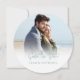 Este design apresenta uma data de salvamento perfeita para casamentos de destino, com um estilo elegante e moderno minimalista com design de casamento de praia, com um design de areia único e dólar e um modelo de foto simples