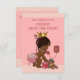 A elegante princesa étnica personalizada vintage salva a data de convites para o chá de bebê modelo para meninas africanas americanas com uma bela ilustração vintage de uma menina fofa e adorável com fralda rosa na moda, pérolas, fitas e coroa dourada. Ela está falando em um velho telefone vermelho pedindo que você salve a data! Ela está segurando uma mala rosa e seu ursinho de pelúcia está se inclinando contra ela - ela está toda arrumada e pronta para sua chegada! O fundo é um bonito rosa, com um clássico, moderno, contemporâneo, pedras cor-de-rosa, borda e texto rosa. Chic, trendy, divertida, moderna, feminina engraçada, divertida, humorística, caprichosa, barato personalizada / personalizada bebê personalizada salvando as modelos de encontro. Decorado de ambos os lados. O verso/verso tem o mesmo design. Impressão frente e verso dupla. Se precisar de assistência para personalizar seu produto, entre em contato comigo através da minha loja e eu ficarei feliz em ajudar. Tenho produtos correspondentes na minha loja.