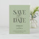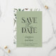 Salvar data de casamento moderno com folhagem minimal botânica em verde script não foto. Eucalipto pintado à mão, folhagem minimal e coroa de rattan rústica moderna dão a este cartão de anúncio um toque luxuoso. Em verdes, marrons e cinzas clássicos.