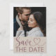 Moderno e elegante, é este cartão postal de casamento 'salvar data'. Na frente está a foto do casal favorito com caligrafia elegante 'Salvar data' com detalhes em coração. No verso há espaço para adicionar seus detalhes. Muito fácil de personalizar com suas próprias informações.