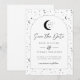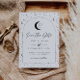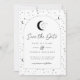 Um cartão de salve a data com tema de lua e estrelas celestiais em uma paleta de cores monocromática. Personalize a cor do padrão de estrelas, fundo, preenchimento do arco e elemento da lua!