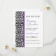 Um padrão de papel de parede damasco preto e branco juntamente com sotaques roxos reais servem para destacar este convite. Facilmente personalizado com seu(s) nome(s), data do evento e informações. O verso é deixado intencionalmente em branco. Disponível em cores alternativas com favores, cartões postais e convites correspondentes