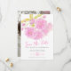 Salve a data cor-de-rosa, floração aquosa, cartão botânico de casamento com sua própria foto no verso. Diga aos seus convidados que saibam seu dia de casamento com esses lindos cartões florais de primavera. Outros itens correspondentes estão disponíveis ou podem ser criados por solicitação. Pintor de aquarela original com tratamento de cor e design por Sarah Trett para www.mylittleedenweddings.com