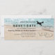 Mergulhe no romance das areias ensolaradas e ondas de oceano tranquilizantes com nosso único destino de praia O cartão de embarque "Salve a data". Criada meticulosamente com um pano de fundo da ilha tropical oceânica, a passagem apresenta um conjunto vintage de praia arenosa com dois corações amorosos na orla costeira, inscritos elegantemente com suas iniciais. O texto do casamento modelo adiciona um toque pessoal ao seu grande dia, convidando hóspedes a embarcar numa viagem inesquecível de amor e celebração.