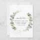 Cartão de Salve a Data de casamento de aquarela botânica de eucalipto suculento em fundo branco - inclui tipografia de roteiro bonita e elegante com folhas botânicas modernas e folhagem para a celebração especial do dia do casamento.