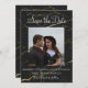 Um lindo convite de salvar a data com fundo de mármore com espaço para sua própria foto.