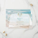 Save the Date de Casamento | Casamento de Praia Geométrico com Monograma Moderno | Um toque moderno nos convites de Casamento de Praia - Convite de Casamento único, projetado para a NoivaDescalça™ pela ©WhimsicalArtwork™, apresenta uma forma geométrica em estilo de terrário deslocado com transparências variadas nas facetas para permitir que o fundo da Praia Tropical do Oceano seja exibido em uma variedade de formas e intensidades. Uma abordagem lúdica da tipografia no texto - com as iniciais dos nomes da Noiva e do Noivo cercadas por uma coroa de louros no topo - em duas cores (turquesa e dourado) - seguida por fontes serifadas coordenadas em verde azulado suave (capturado do oceano), turquesa (capturado das ondas do oceano no fundo) e letras douradas. Os detalhes do casamento, limpos e simples, apenas na frente do convite - um design de praia tropical coordenado no verso. Todo o texto, incluindo estilos de fonte e cores, é personalizável