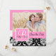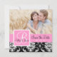 Rosa, Preto e Branco Padrão Damasco Salve a Data com Monograma, Inicial e Nomes Cartão Plano com sua foto de noivado na frente e seu texto no verso. Modelo Totalmente Personalizável. ELke Clarke©