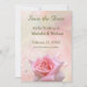 Elegante salve a data em que o anúncio do casamento apresenta uma simples rosa rosa-rosa maravilhosa sobre um fundo cor-de-água cor-de-rosa. Impressão duplo tem design de coordenação na parte de trás. Basta editar o texto e a data opcional no editor de texto fácil do Zazzle.