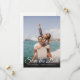 Este cartão de salve a data com letra moderna e elegante apresenta sua foto especial sobreposta com uma salve a data em letra acima dos seus nomes, data e local em texto branco. O verso tem detalhes adicionais da salve a data, incluindo o endereço do seu site de casamento. Criado por Thisisnotme©