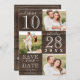 Este cartão rústico, moderno e simples de "Save the Date" de casamento é perfeito para o evento contemporâneo e moderno. O design inclui três fotos de destaque do adorável casal, um grande destaque de data e a frase "Save Our Date" (Guarde nossa data), alternando entre uma fonte manuscrita exclusiva e uma fonte serifada única sobre um fundo de madeira de celeiro rústico marrom. No verso, há uma borda com listras e um monograma do casal. É elegante, único, moderno, ousado e clássico; o design perfeito para impressionar seus convidados.