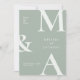 Convite de Salve o Dia de Casamento em Verde Salvia Minimalista Moderna. Apresenta tipografia de monograma em negrito e design gráfico minimalista. Personalize o texto com todos os seus detalhes