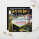 Las Vegas guarde o anúncio do casamento para noivas e noivos de Las Vegas. Design apresenta uma foto aérea da Strip à noite.