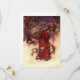 Cartão com a ilustração de Arthur Rackham Santa Claus (1907). Um Papai Noel de leito vermelho carregar um saco de presentes de Natal em uma madeira de neve. Elves voam ao seu lado. Um presente alegre para o Natal!