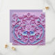 This pink and blue Save the Date Card is designed for a baby shower. The scrollwork image on the front of the card resembles an elaborate cake decoration with frosting flowers.