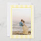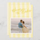 Anuncie sua data de casamento com o nosso casamento moderno, mas elegante, Salve o cartão da data em um tom tão bonito de manteiga amarela. Este design apresenta fitas de pré-disquete em tons alternados de manteiga amarela na frente e atrás, que emprestam um toque elegante e chic, ainda sendo frescas e tendas. O design apresenta "Salvar a Data" escrito em um roteiro clássico de caligrafia com uma sensação nostálgica, de vintagem e um toque de capricho. Tem certeza de que abomina seus entes queridos com este único cartão de data!