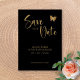 Anuncie seu dia especial com nosso deslumbrante cartão "Black & Gold Script com Borboleta Glitter Save the Date". Este design elegante apresenta um fundo preto sofisticado adornado com uma escrita dourada luxuosa e tipografia de acento dourado moderno para personalização. Motivos delicados de borboletas em brilho dourado cintilante adicionam um toque de romance e brilho. Personalize com seus nomes, data do casamento e detalhes para criar um convite único e memorável que define o tom para uma celebração luxuosa. Perfeito para casais que buscam um anúncio de casamento glamoroso e sofisticado que cative seus convidados. Faça cada detalhe do seu casamento inesquecível com este design requintado.