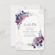 Torta floral moderna, bonita e moderna salve o cartão orçamentário de data que você pode personalizar facilmente clicando no botão "Personalizar" acima. Apresentando floral roxo e azul escuro com uma estrutura geométrica de folha de ouro e tipografia de script