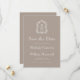 Este elegante casamento inspirado na vintage Save the Date design apresenta um par de iniciais monográficas brancas em letra serif aberta acima e abaixo de uma linha divisória e rodeadas por uma crista botânica de arte de linha num fundo esticado. A parte traseira da placa está esticada.