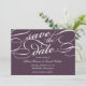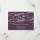 Cartões salve a data elegantes na ameixa de beringela escura e recurso branco embelezando a escrita para uma aparência clássica e formal.