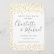 Apresentando nomes de estilo de assinatura e corações dourados confetti, este elegante salve o cartão de data pode ser personalizado com suas informações especiais de data em caracteres de cinza. Projetado por Thisnotme©