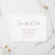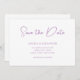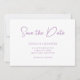 Casamento minimalista salve o texto da data em uma caligrafia elegante e moderna escrita à mão. Os nomes dos casais e outras informações sobre eventos de casamento apresentam uma fonte moderna usada com todos os bonés e opções em minúsculas. Altere o fundo branco simples ou a cor da fonte de lavanda para corresponder à paleta de cores do casamento.