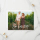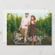 Script de Pincel Moderno Salve nosso Cartão com fotos de Casal de Anúncio de Casamento de Noivado de Data