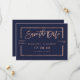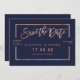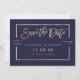 Rosa Dourada tipografia em um bloco de cores personalizável de quadro azul rosa de ouro, marinho, e stripes geométricas de ouro falso rosa, salvando a data do casamento, perfeito para o casamento elegante e na moda,
