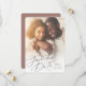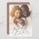 Um design simples e elegante com seus detalhes de casamento alinhados na parte inferior, esta foto vertical salva a data com um guião delicado e letal. Personalize com seus nomes, data do casamento e local junto em letras negras suaves, e adicione detalhes adicionais ao verso.