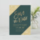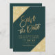 Dourada tipografia em um bloco de cor esmeralda verde ouro personalizável, e fitas geométricas de ouro falsas salvam o casamento da data, perfeito para o casamento elegante e na moda,