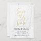 Casamento moderno de na moda guarde as datas que contêm uma fonte falsa do roteiro de folha de ouro, fundo de mármore branco e espaços reservados para suas informações personalizadas de casamento. A parte de trás da data de salvamento pode ser alterada para uma cor de sua preferência com a ferramenta Personalizar.
