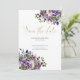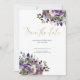 Este maravilhoso Invitation Suite contém um buquê floral de aquarela em roxo, violeta, lilás e branco. Elementos botânicos eucalipto e verde. Perfeito para um casamento moderno boho, esta suíte inclui simples design moderno e detalhes cursivos de ouro.