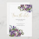 Reserve A Data Script Dourado do Buquê de Aquarela Violeta Roxo