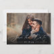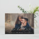 Anuncie sua data de casamento em estilo inesquecível com esses cartões salve a data de fotos simples e elegantes, com uma foto horizontal ou paisagística de cheio com "salvar a data" sobreposta em letras brancas de escrita caligráfica ao longo da parte inferior. Seus nomes, data do casamento e local do casamento aparecem em letras modernas. Personalize as costas com detalhes adicionais, como o seu site de casamento.