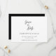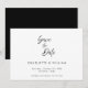 Carta de save the date de casamento com script elegante manuscrito. Este cartão de save the date apresenta um texto em script elegante com um tema minimalista em preto e branco. Personalize o texto com todos os detalhes do seu dia especial.