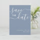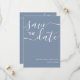 Script Elegante Mínimo Azul Dusty Salve A Data. Na moda minimalista salve o Cartão com fotos de data com uma simples fonte e foto elegantes de script.