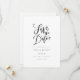 Simples roteiro elegante preto e branco salve o cartão de aviso de data com amor. Adicione seus detalhes especiais de lançamento em um texto clássico.