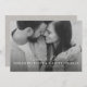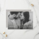 Compartilhe as notícias de seu noivado e casamento com esta horizontal de uma foto, salve a placa de data com um elegante tratamento de tipo em branco que se senta na parte inferior de uma foto horizontal. A parte de trás é uma sombra neutra com um padrão sutil de grade. A cor pode ser ajustada clicando em "Personalizar".