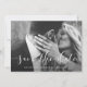 Este elegante cartão de data apresenta sua foto pessoal com uma camada de script branco romântica e um visual moderno de mármore no verso.