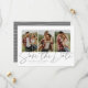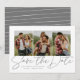 Com três fotos verticais e um texto moderno escrito "salve a data", este cartão é a maneira perfeita de anunciar o seu noivado e casamento futuro para amigos e familiares. O texto cinza chique é ousado e moderno, mas ainda sofisticado. O texto personalizável na frente tem espaço para nomes, data, local e outras informações como um site de casamento. O verso é um padrão neutro de listras cinza e branco. A cor é editável clicando em "Personalizar".