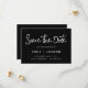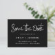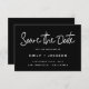 Escrita Mínima Preta Moderna e Elegante Mídia Limitada Salve o Cartão-Postal de Casamento de Data. O cartão de convite para salvar a data inclui a tipografia moderna de script com letra manuscrita com um design chic e simples ao qual você pode adicionar sua fotografia personalizada de noivado.