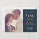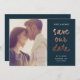 Um moderno salve a data que apresenta o script de data em rosa gold com o nome e data do casal em cinzas escuras em um fundo rosa-claro. A maneira perfeita de anunciar seu próximo casamento para amigos e familiares para garantir que marquem seus calendários. Coordena-se com outros itens em nosso Moderno Salve a coleção de datas como etiquetas de endereço de retorno, adesivos e muito mais.