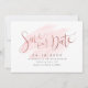 Manuscrito, salve o script de data em uma cor de folha de ouro falso rosa em fundo branco cor-de-água rosa, elegante e na moda, cartões salve a data simples e personalizados modernos de excelente. Veja todas as peças correspondentes na coleção.