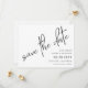 Um design simples com estilo contemporâneo, esta placa Save the Date tem um rosto moderno do tipo manuscrito que solta "Save the Date" e é colocada na placa na diagonal. Este tipo de face é emparelhado com um tipo de serif nítido em um modelo de texto fácil de usar para personalizar com suas informações de casamento. Os convites de casamento e outros itens estão disponíveis usando esta design.