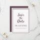 Anuncie seu próximo evento com nosso anúncio de casamento moderno e simples, roxo e branco, Salve a Data! O conjunto de convites apresenta um design minimalista com uma borda dupla de quadros em uma roxa do CASSIS de tendências em um fundo branco nítido. A formulação tradicional proporciona sofisticação eterno mas moderna. Personalize a design de casamento com seu primeiro e sobrenomes e data em letras roxas e roteiro de Trendy Cassis. A parte traseira da placa corresponde a roxo sólido.